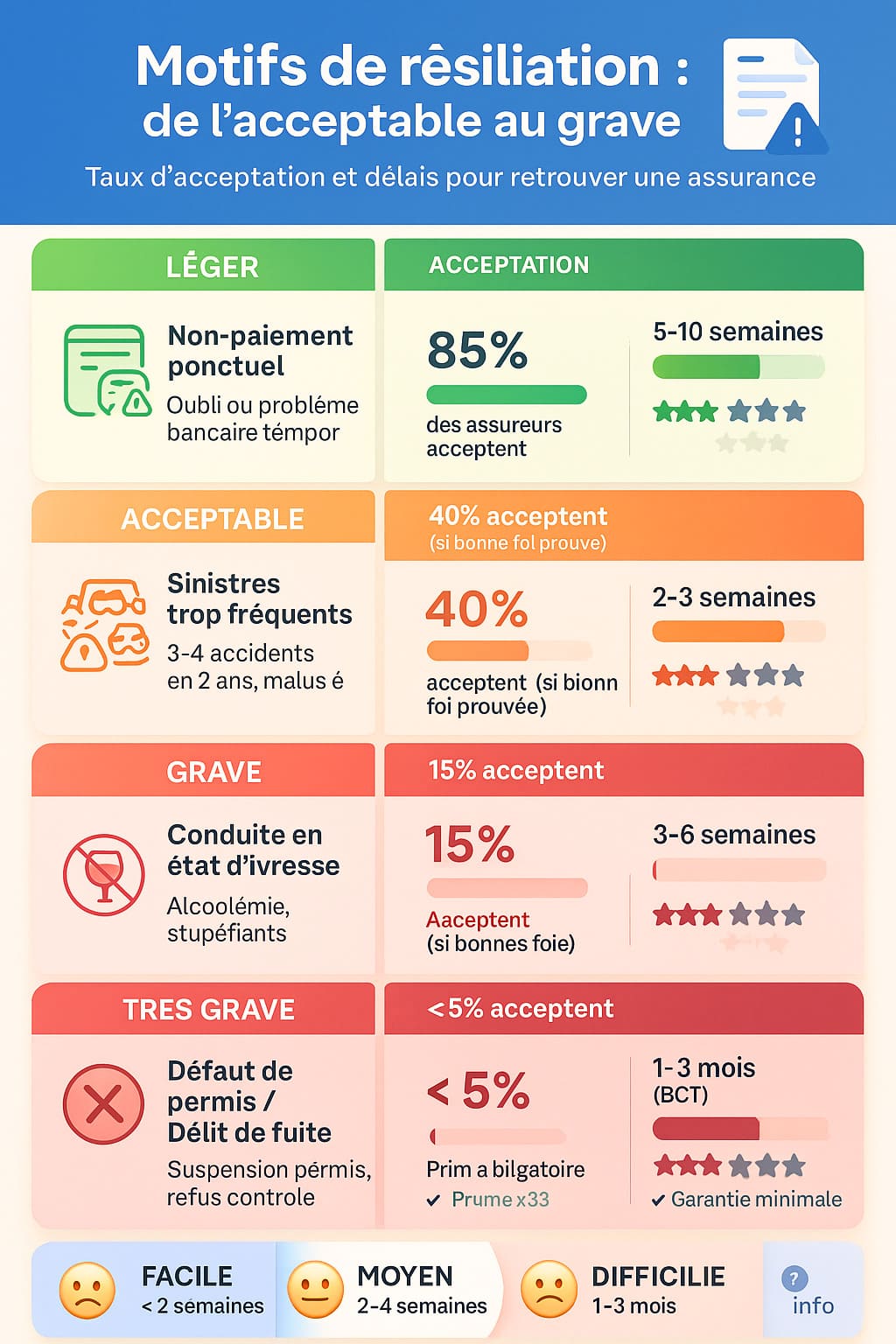 Certaines raisons sont considérées comme moins graves par les assureurs :